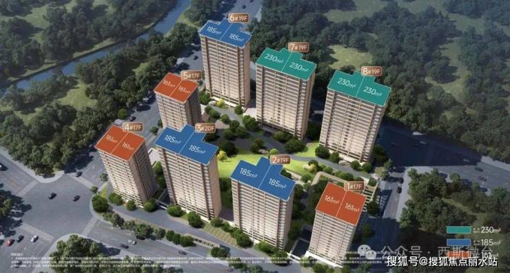 一共由8幢17-20层的高层住宅组成:户型面积段为161-185-230方,整盘共计278套,建筑面积约5.2万方: