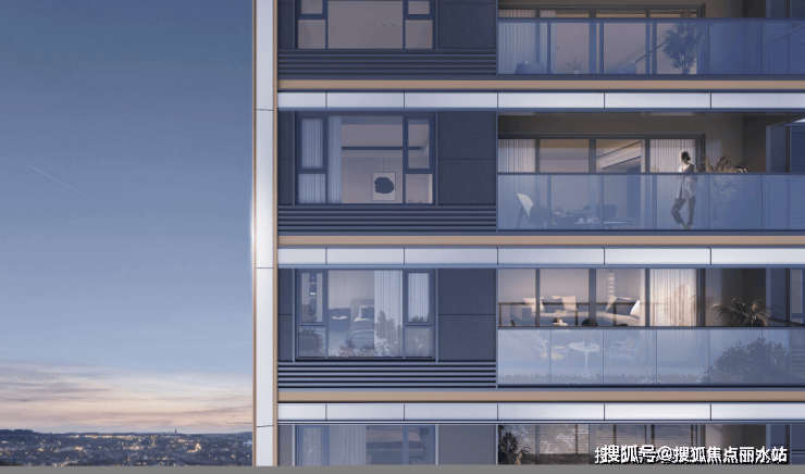 楼盘外立面:建筑外立面,实现千年古韵与现代立面美学结合,材质采用了世界塔尖奢宅标配的铝板和钻感玻璃,珍珠蓝搭配局部驼色点缀。