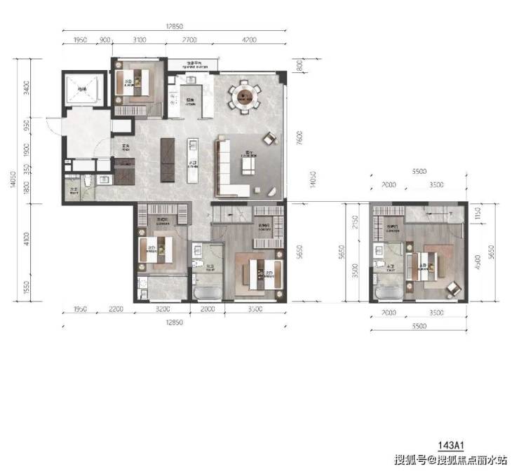---143方过道浪费少,搞了四房三卫,且尺度大多较为舒适,是一个设计的不错的户型。