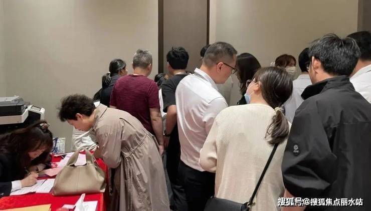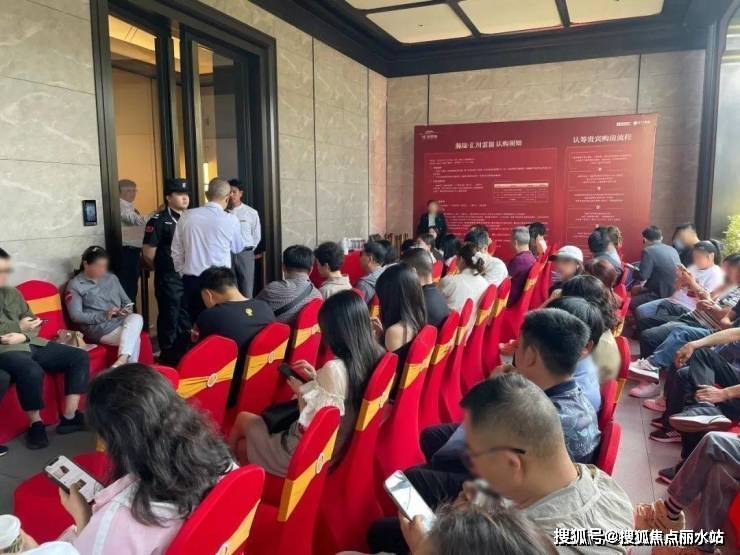 在工作人员的引导下,买房人有序完成登记,领取臂贴依次入场。等候区内座无虚席,涌动的人潮诠释了第四代花园住宅的非凡魅力,他们个个都满怀期待,殷切等候正式开盘。