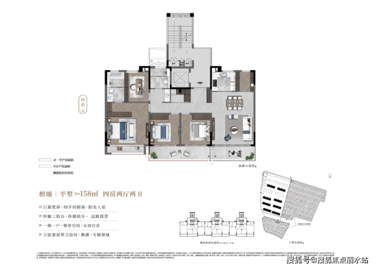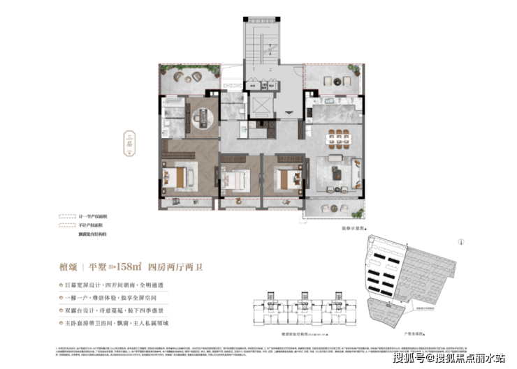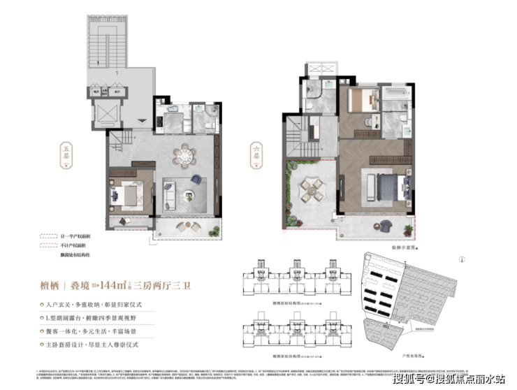 更创新的是上叠3层的设计,客餐厅厨在中间,电梯直接停靠,卧室在上下,互不打扰。