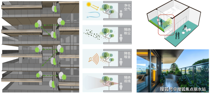 最颠覆性的是,作为有着五年六座空中庭院经验的江山万里,在半岛的空中庭院打造上,完全突破了四代宅仅仅南北向的露台设计,创造出了“全环景空中庭院”!