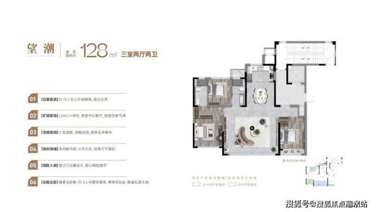 其中128㎡户型设计极为亮眼:南向面宽约13.7米,超越传统住宅160㎡的面宽尺度。近7米超大横厅+远高于普通住宅的3.15米层高,如此高前瞻性的设计,势必将重塑豪宅垂直空间。大大提高了整体空间感受。北侧约3.6米U型厨房+独立餐厅设计,满足6~8人圆桌摆放需求。