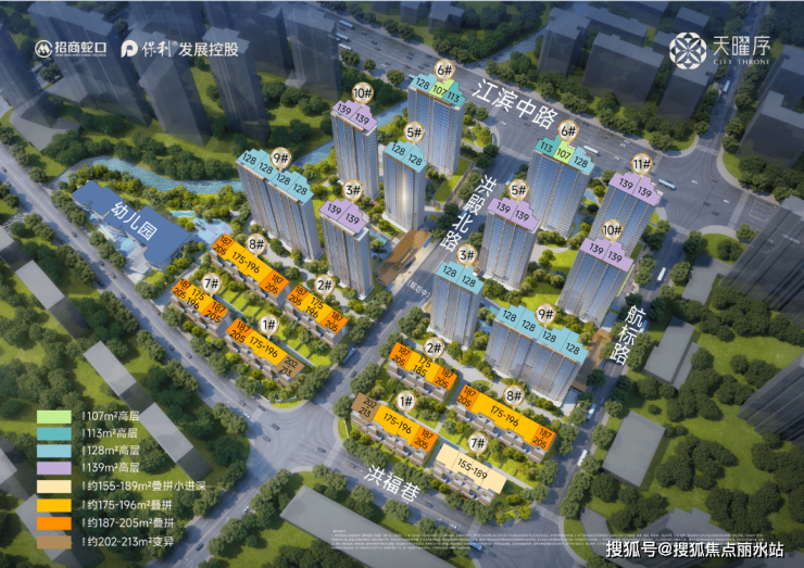 该项目所有楼栋采用南低北高的布局,在保证采光最大化的同时,实现“栋栋皆楼王,户户有美景”的开窗见园场景。