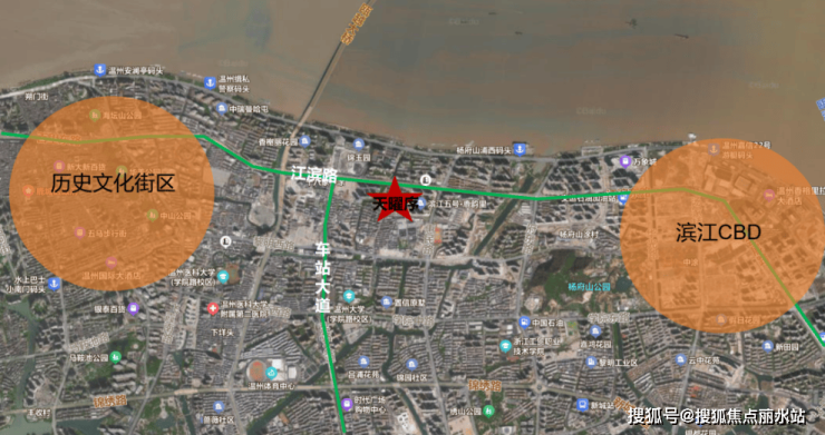 该项目位于江滨路与车站大道交汇以东,直线距离瓯江300米。其左边是老城核心区,各类配套应有尽有,生活便捷。比如耳熟能详的五马街和欧洲城,右边是目前最热城市滨江CBD商务区,作为温州城市封面板块。