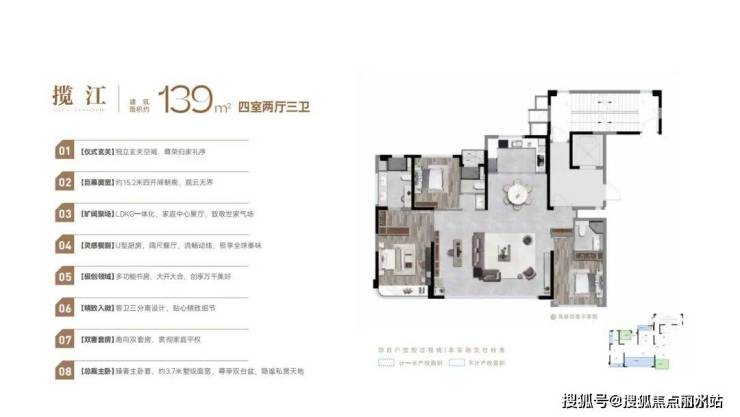 139㎡户型则更侧重空间尺度和舒适度的全面提升: 南向面宽达到约15.2米,超越市场180㎡传统住宅的尺度。