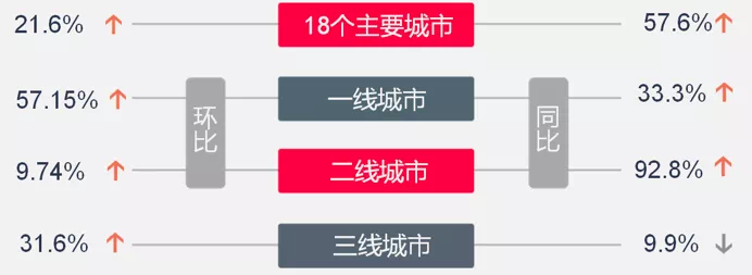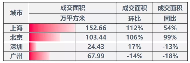 ▌一线城市:成交环比上升,上海增幅明显