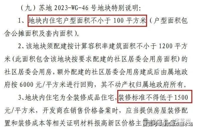 根据拍地要求,地块内住宅户型面积不小于100平方米,装标不低于1500元/㎡。
