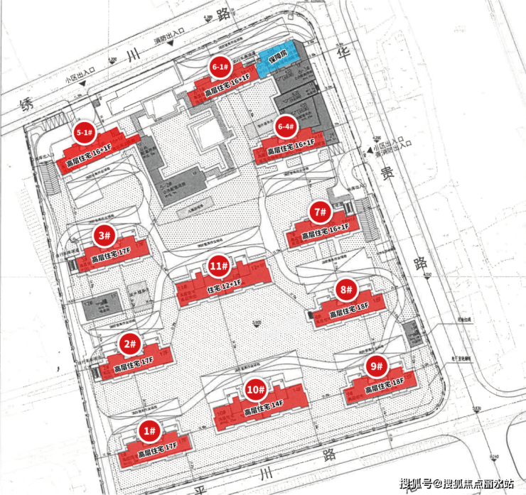 该地块东至华贵路,南至平川路,西至C05-19地块,北至绣川路,整体位于陆家嘴锦绣云澜的北侧,根据设计方案显示,项目由11栋13-18F高层住宅、1栋17F保障房以及若干社区配套用房组成;