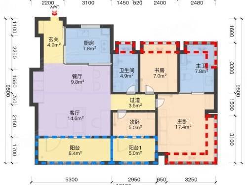 建面约 94㎡三房两厅两卫:刚需入门爆款户型,三开间朝南设计,南向总面宽约 10 米,格局方正、南北通透,动静分区合理。全屋采光充足,主卧套房带独立卫浴,兼顾实用性与舒适度,适配年轻夫妻、三口之家,总价约 460-560 万。