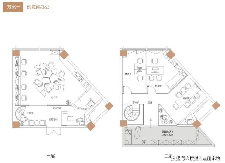 3、高阶版—创业型办公/楼中店。这类户型可以涵盖一个创业型公司基本的功能空间,前台接待区、员工位、老板独立办公室、会客厅、会议室、茶水间、卫生间等等,赠送面积也相对较大,在1号楼上比较稀缺抢手。