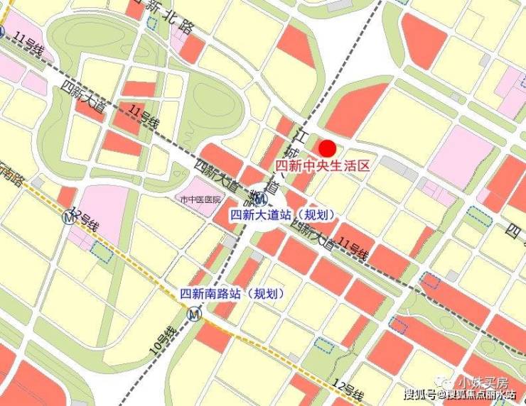 地铁方面,四新中央生活区周边规划的有地铁10、11、12号线,其中规划的四新大道站(10、11号线换乘)、四新南路站(10、12号线换乘)距离项目最近。