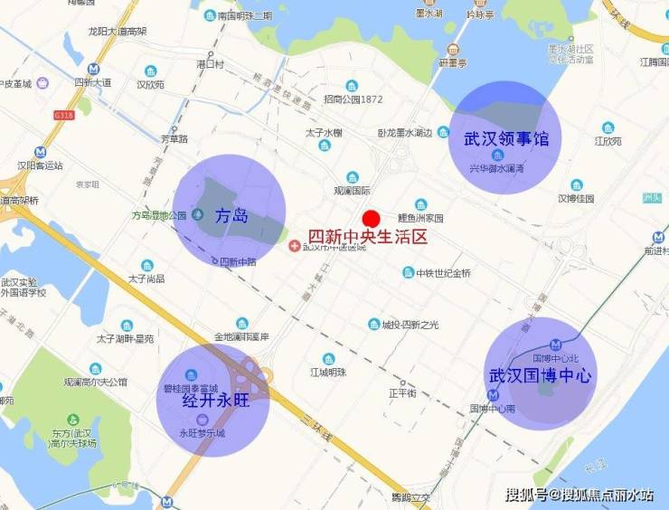 四新中央生活区位于汉阳区江城大道和四新北路交汇处东南侧。区位上,北向有武汉领事馆,南向经开永旺,东向是武汉国际博览中心,西向是规划的方岛,周边正好全是区域重点规划发展的功能区,区域潜力相当可观。