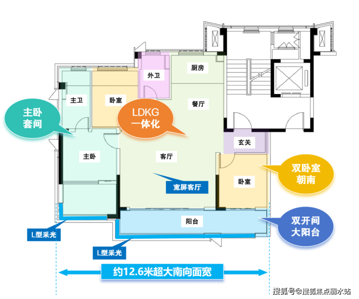 约12.6米南向面宽+双开间大阳台,如同为家按上了“自然取景框”,实现景观与生活的无缝衔接。