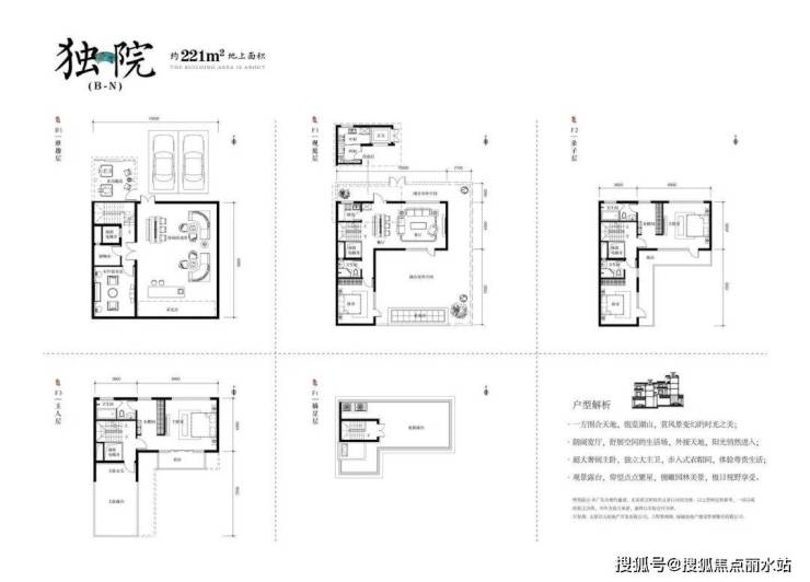 官山园著整体户型设计大面宽、短进深,极大限度保证室内采光及通风,提升空间舒适度。以建面约220㎡户型为例,一方围合天地,饱览湖山,赏风景变幻的时光之美;郎阔宽厅,舒展空间的生活场,外接天地,阳光悄然进入;超大奢阔主卧,独立大主卫,步入式衣帽间,体验尊贵生活;观景露台,仰望点点繁星,俯瞰园林美景,极目视野享受。