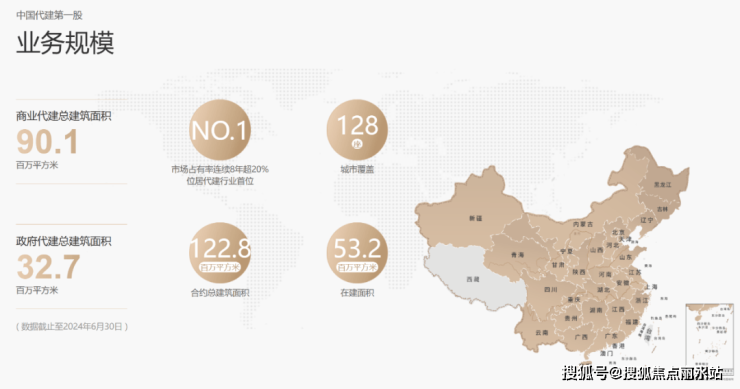 绿城管理控股有限公司及其附属公司(合称“绿城管理”),是中国房地产轻资产开发模式的先行者、引领者。绿城管理成立于2010年,2024年绿城管理稳居行业榜首,2024年新拓代建面积达到3649万平方米,领先第二名多达一倍。涵盖128个城市,总建筑面积122.8百万平方米(其中商业代建90.1百万平方米、政府代建32.7百万平米),在建面积53.2百万平方米(数据截止至2024年6月30日)。