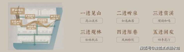 以水为园,设计五进礼序空间,融入江南造园技艺,再现移步异景,逸趣游园。