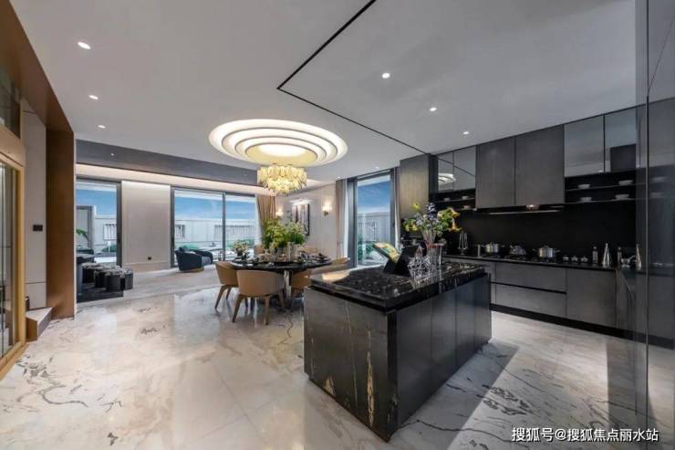 同时,观湖上品在叠石理水、廊下挂簪、亭间垂帘、避风䈋、坡屋顶等古韵元素的细节呈现方面也下了很大功夫。许多元素甚至由大面积的质感金属和透光玉石等材质还原而成,高贵优雅的气质中,又融合了古韵今意的东方审美。