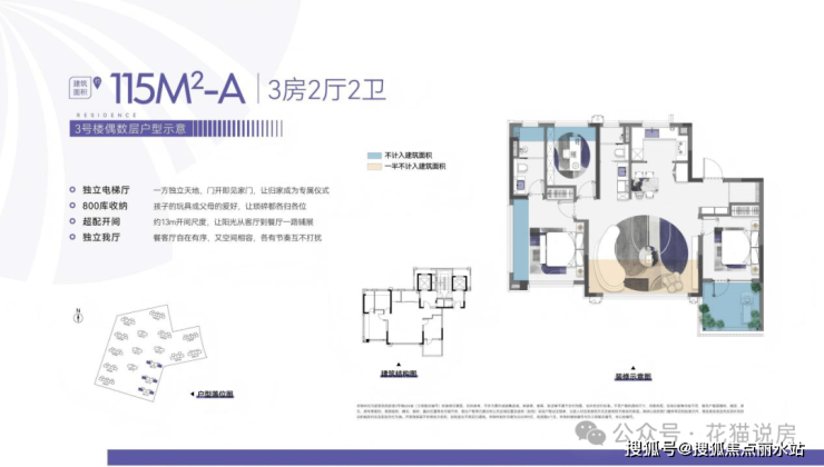 建面约115平,大三房,竟然做了私梯入户,加上800库、玄关柜,做到了三重玄关收纳,超实用!大横厅约6米面宽,南向开间约13.15米!