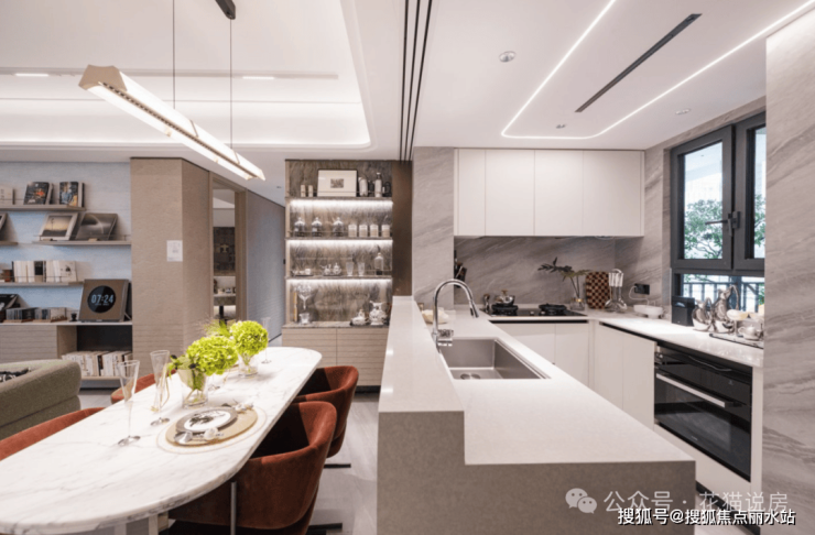 3、 做年轻人喜爱的家,联发雨花新澍的室内装修费劲心思:厨房五金上墙、S墙内置冰箱、方太升降式油烟机、岩板通铺、镜柜集成收纳…精确到使用细节的场景布置,很难让人不动心。