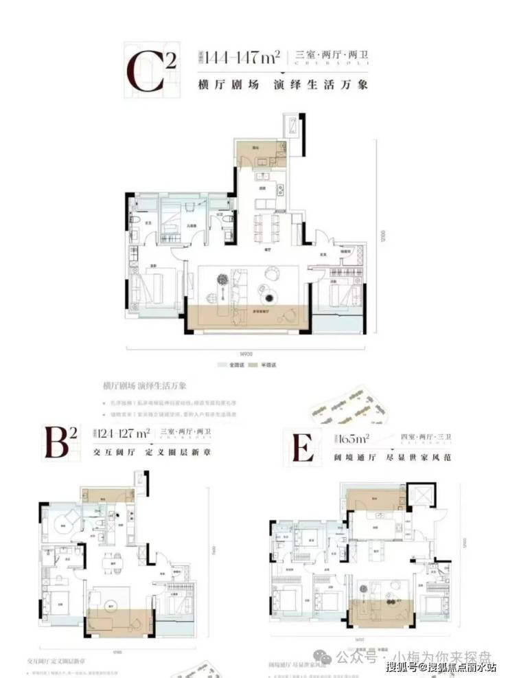 目前预售证已拿,已经可以认购了,所有楼栋都是2梯2户,首开11号楼和12号楼,面积段106—124—144-—154——165。户型图如下