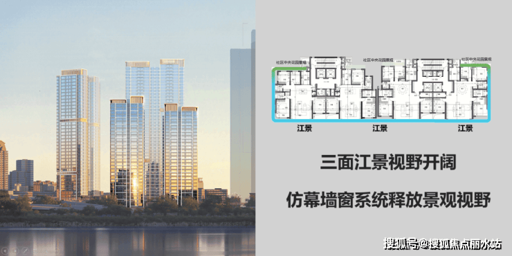住宅三面江景视野开阔,仿幕墙窗系统释放景观视野,延续沿江界面价值感。