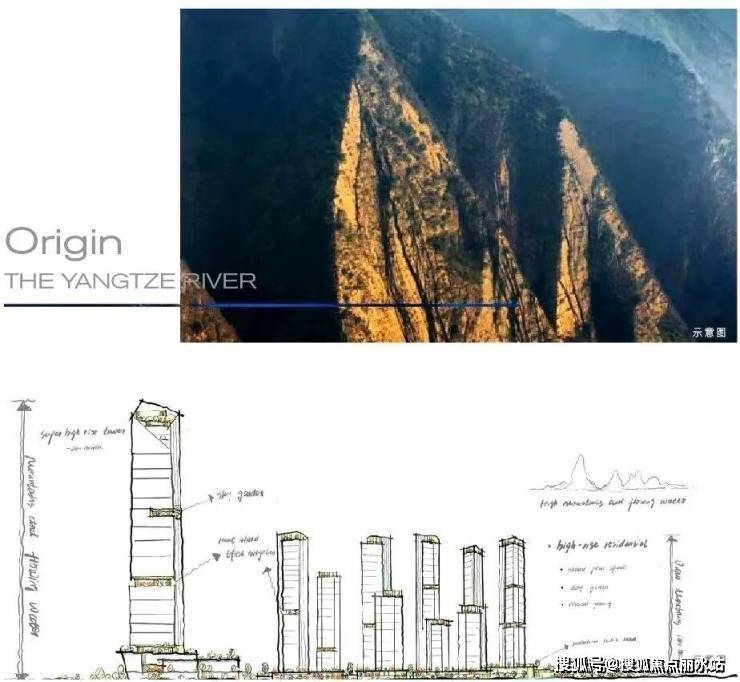 项目建筑空间序列取意三峡山水之势,将层峦叠嶂的自然形态转译为错落有致的城市空间序列。通过建筑层级与退台、架空层等元素的协同设计,模拟山体峡谷的韵律,在刚柔并济中重构三峡意象的当代城市风景。