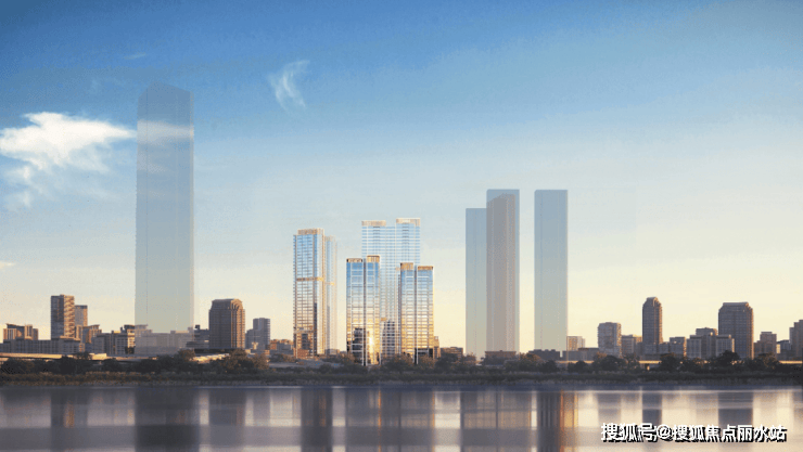 项目楼栋高度南低北高,临江视线不受遮挡;临江楼栋高度东西两侧高,中间低,形成自然的开敞空间,使得视线通廊更为通透;建筑起伏凸显主次序列,天际线连绵起伏、高低有序,空间节奏韵律丰富。