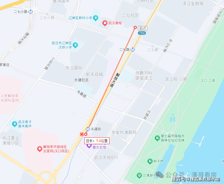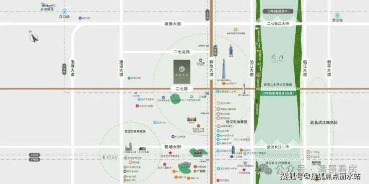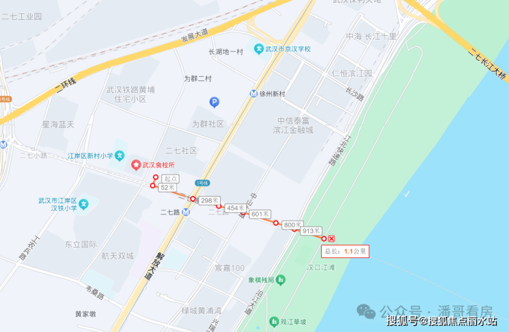 项目所处二七路对面就有二七公园,二七路二七滨江段如果建成,步行到汉口江滩也不远。