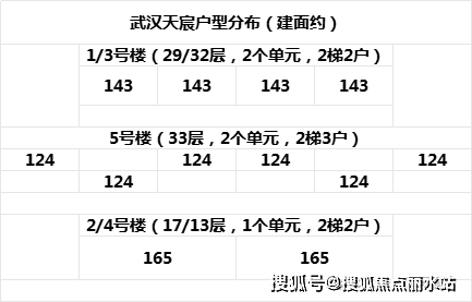 124㎡-143㎡-166㎡,3个面积段有5个户型。