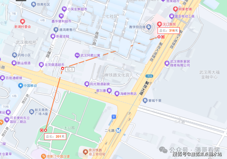 ✓自驾方面:紧临解放大道、二环线(二七长江大桥)、武汉大道(长江二桥),无论是汉口核心、还是过江,自驾都很方便。不过解放大道、二环线二七长江大桥桥头路段日常车流量都比较大,早晚高峰常态堵车。