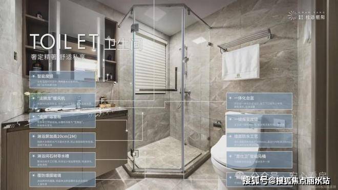 主卫智能马桶盖 / 紧急报警按钮 / 预留防溅插座 / 柔和暖风机 / 主卫防雾化妆镜/镜柜内置插座