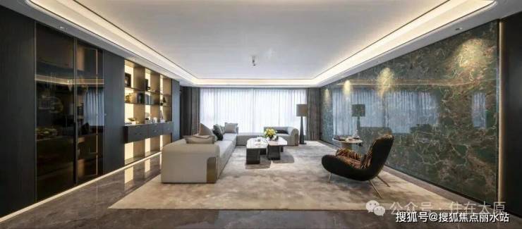 电视背景墙,甄选同款珍稀“蓝翡翠”石材整墙铺就,价值逾40万元,与玄关珍石遥相呼应,彰显一以贯之的奢选标准。