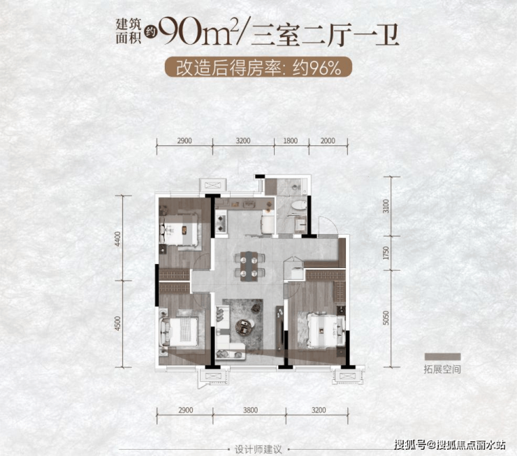 熹日——日光之影,臻藏生活的美好之光,建筑面积约90㎡三室二厅一卫。改造后达96%超高得房率。多元格局,全屋超高收纳空间,满足生活更多想象。
