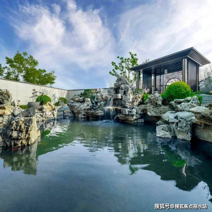绿城御河上院匠造3000㎡镜月湖中心景观。漫步其间,波光粼粼,叠石成峰,勾勒出一幅美轮美奂的诗意画卷。湖畔环绕的太湖石假山,出自苏州香山帮匠人之手,精心挑选与巧叠,每一块都是自然与匠人精神的结晶。