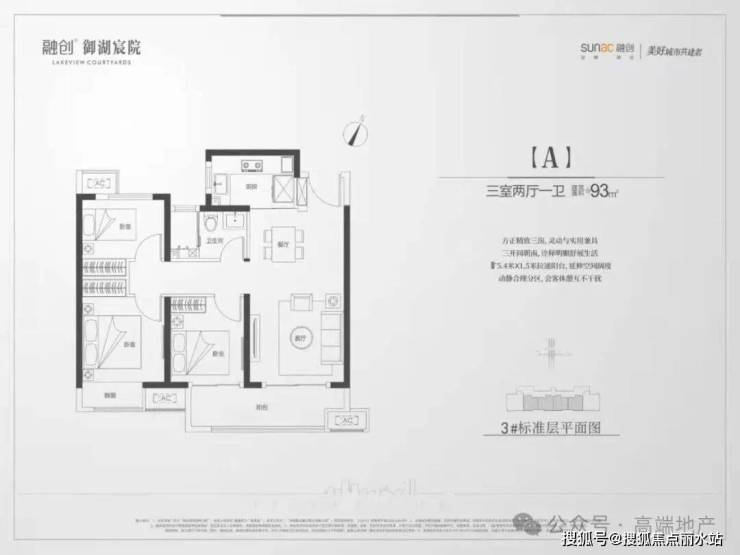 【建面93㎡3居】93.0-95.0万-分布于三期3号楼 ,3梯6户,层高2.90米,总楼层34F