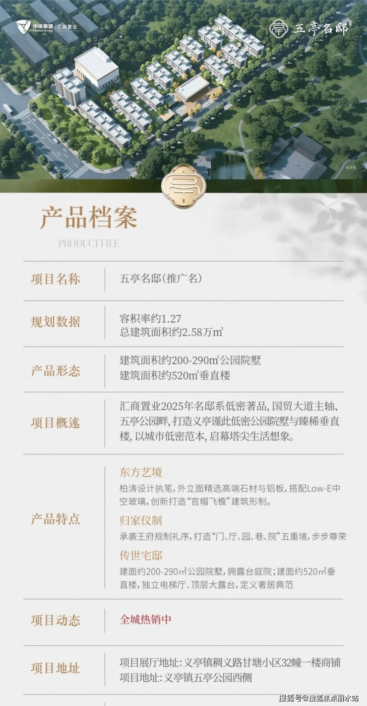 产品的卓越竞争力,是五亭名邸赢得市场的根本。为匹配义亭塔尖圈层的身份与品味,项目以“传世藏品”为标准,承袭汇商置业名邸系高端产品的营造智慧,匠心精研39席公园院墅,外立面甄选高端石材、铝板与Low-E玻璃,打造“官帽飞檐”的建筑形制,勾勒出端庄大气的东方风韵。