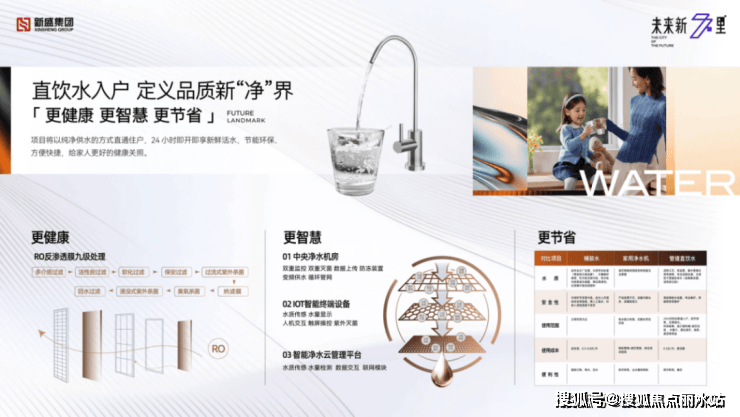在未来新七里,享直饮水入户,简直是品质生活的“神助攻”!首先,经 RO 反渗透九级精滤,水质更加健康有保障,同时,在中央净水机房、智能终端与云平台加持下,智慧又贴心。和桶装水、家用净水机比,水质、安全、使用范围、成本、便利性全占优,省钱又省心,妥妥提升生活幸福感。
