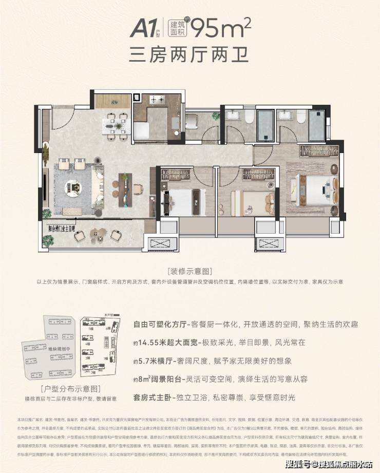 面积段:90㎡三房、95㎡三房、100㎡四房