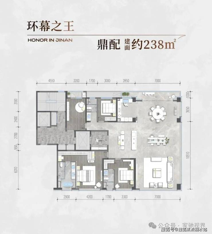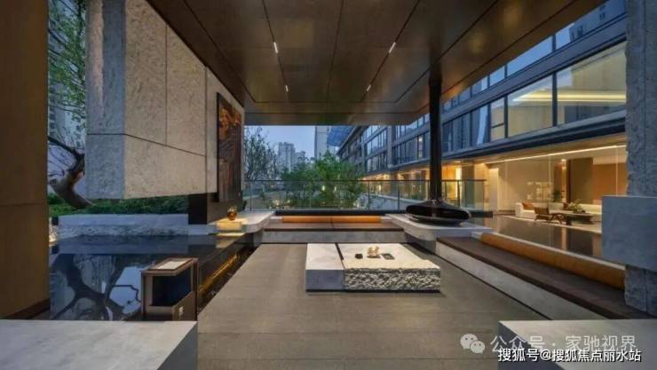 作为三进空间的前场,斥资近千万打造的约百米超级门庭与大型水景相映成辉;顶部采用297个钻石拼花构筑星光穹顶,入口两侧对称植栽特选造型松,单株价值逾五十万,树龄逾五十年,其虬枝盘绕如青龙探水,聚气藏风;门庭博洛尼亚奢石灰奢石与土耳其白玫瑰奢石交汇,演绎超凡质感……这些超越行业标准的投入,每一处都在诉说鼎奢生活的真谛。