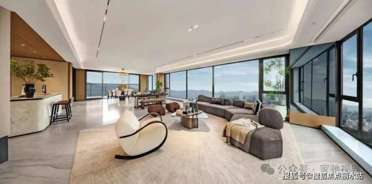 豪宅标配金属铝板与通透玻璃幕墙交织,形成最长约70米的连续晶幕界面,定制“天空之翼”冠顶,镌刻南城绝无仅有的城市天际线。三玻两腔Low-E中空玻璃,具备高紫外线阻隔与卓越隔音性能,将南城山河美景尽收眼底,实现建筑与自然的和谐共生。