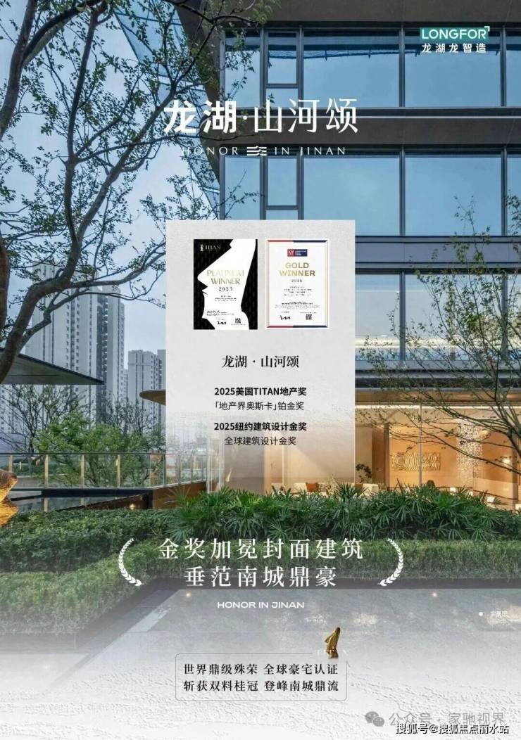 在国际高端建筑与设计领域,奖项一直是产品力与美学高度的权威认证。近日,备受瞩目的2025年美国TITAN地产奖和纽约建筑设计奖荣耀榜单揭晓,龙湖·山河颂凭借卓越的建筑表达、空间营造与场景构建,从众多国际作品中脱颖而出,一举斩获2025美国TITAN地产奖与纽约建筑设计金奖两项国际权威大奖,引爆济南豪宅圈!