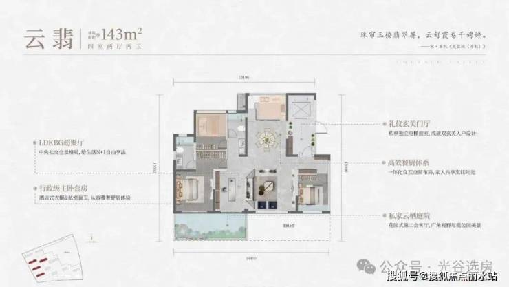 建面约143㎡的四房两厅两卫,以令人惊叹的约105%的得房率,实现了真正的空间跃级。