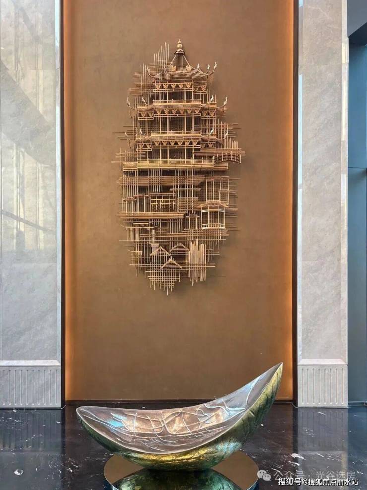 穿过中庭,步入11.2米挑高的归家大厅,背景墙由无数铜制鳞片拼合,似翠鸟掠过林间激起的粼粼波光,与“翠微”诗意共鸣。