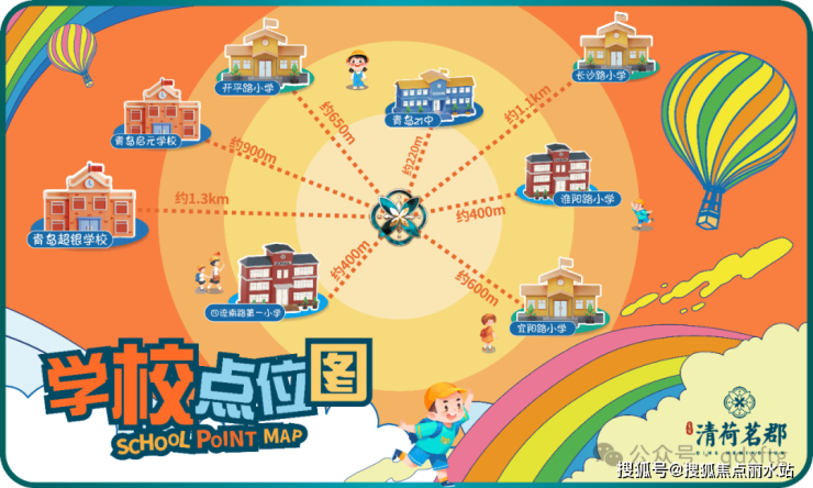 学校:距离四流南路第一小学约400米,周边拥有长沙路小学、开平路小学、淮阳路小学、宜阳路小学;初中: 青岛21中、青岛启元学校、青岛超银学校金沙路校区