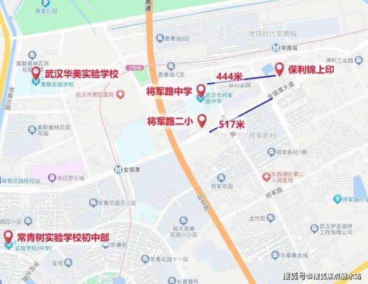 项目自带幼儿园,项目西侧约500米左右就是将军路二小和将军路中学。周边还有武汉华美实验学校(原华一美联)、常青树实验学校。
