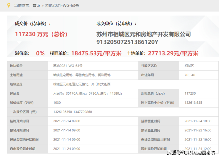 和悦塘前雅院,即,苏地2021-WG-63号地块,位于相城区元和街道纪元路北、齐门北大街西,是2021年11月24日,苏州市相城区元和房地产开发有限公司以底价117230万元成交,楼面价18756元/平。