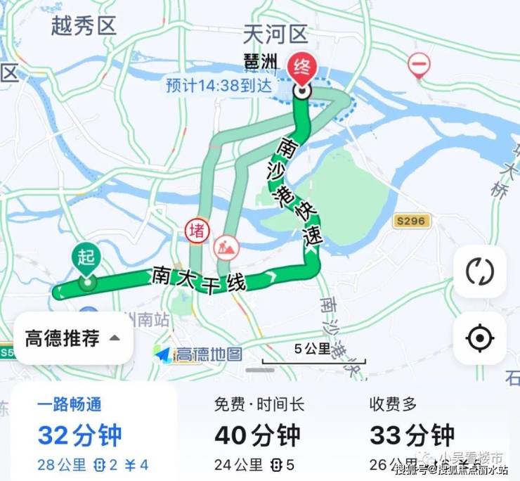 自驾去琶洲:上南大干线到创新城转南沙港快速,全程28公里,高速费4元,耗时32分钟。