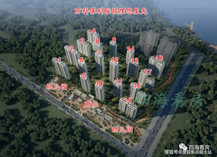 万科保利联投理想星光占地面积约13万方,总建面约51万方,容积率约2.85,共约3336户,机动车停车位4457个,车位比约1:1.3,包含18栋住宅、2所幼儿园和约3200平米box街区。项目分三期开发,一期、二期已交付,目前主推三期。