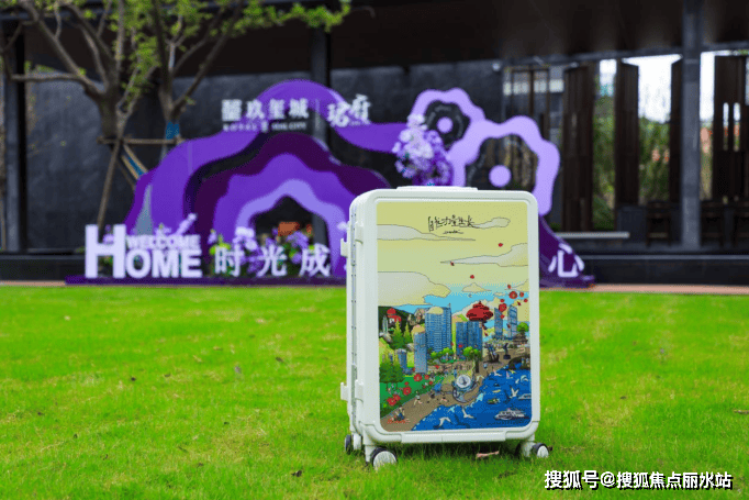 每位交房的业主都可以领到一份独特的交房礼——行李箱,仔细看会发现箱子上的图案大有来头,这幅画是曾与LV、GUCCI合作的插画师周乐先生的原创作品。
